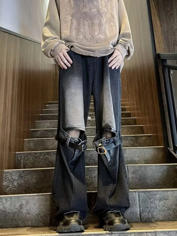Men's Full Size Distressed Wide Leg Buckled Jeans Plus Size