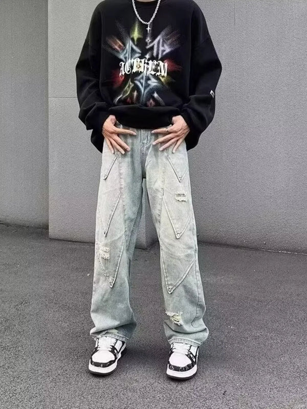 Men's Full Size Distressed Wide Leg Jeans Plus Size