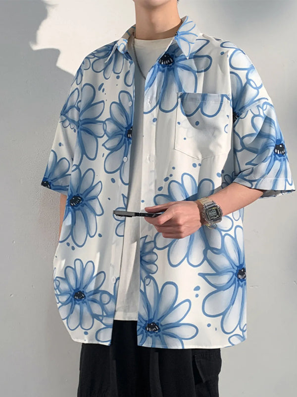 Men's Plus Size Floral Print Short Sleeve Button-Down Shirt