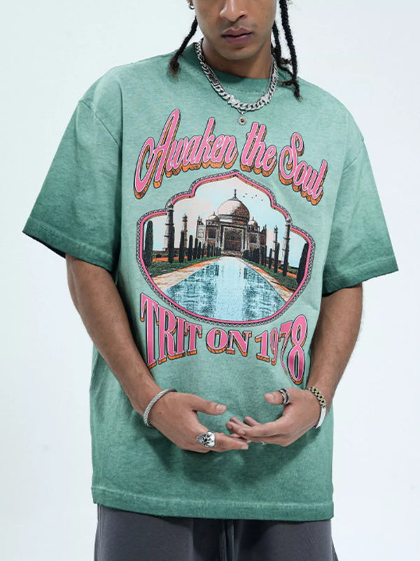 Men's Vintage Wash Graphic Round Neck T-Shirt