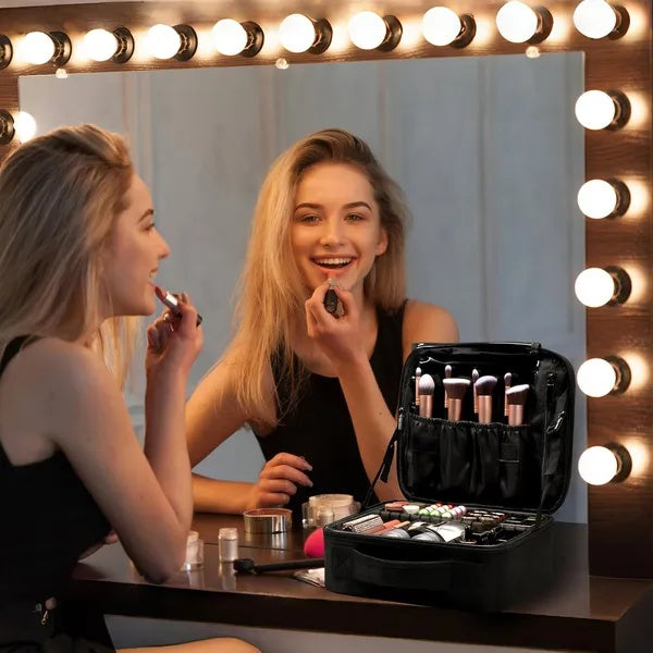 Customizable storage: This makeup bag features 6 adjustable dividers, allowing you to customize the size of each compartment for perfect storage of all your cosmetics, brushes, and accessories.